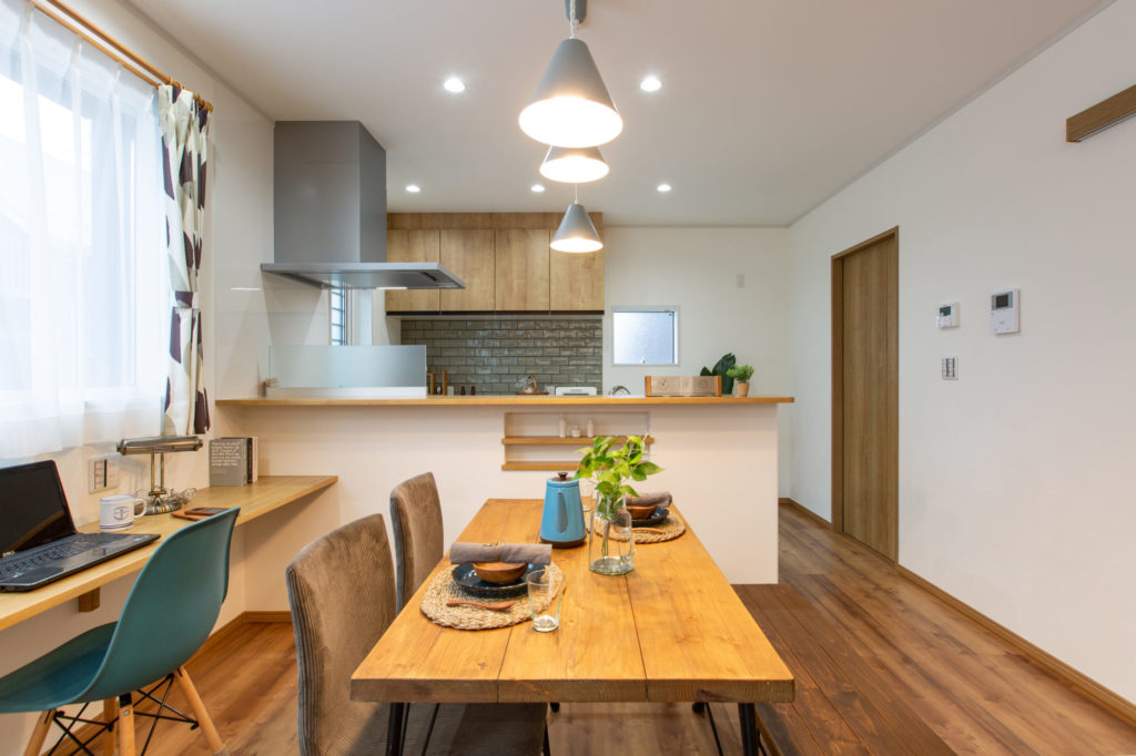 スタディスペースにもなるカウンター、ニッチなどこだわりをたくさん
