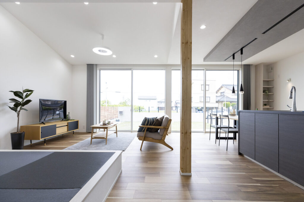 並んだ大きな窓で、ウチとソトのつながりを感じる開放的なLDKを実現